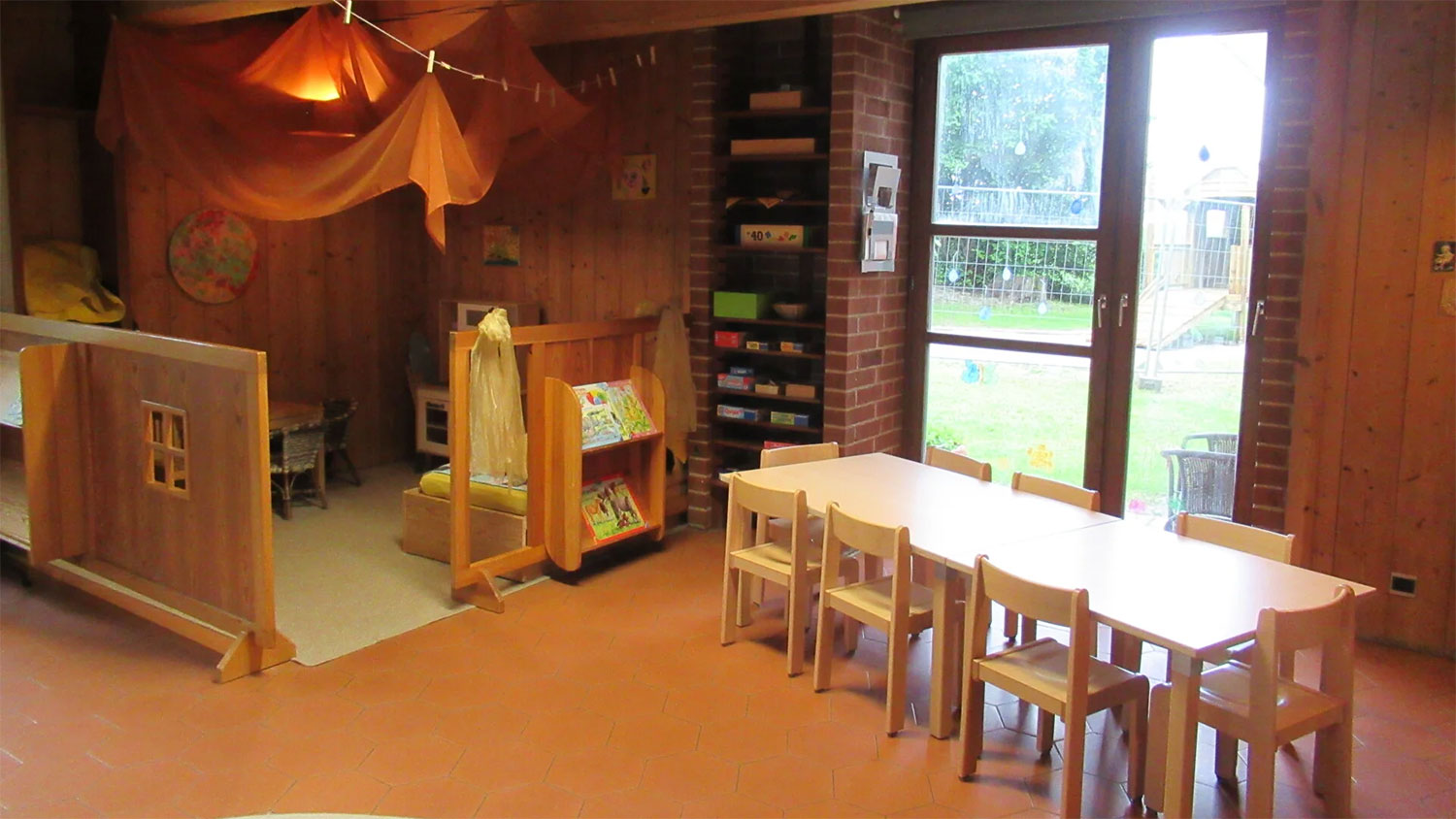 Die Gestaltung der Räume ist wichtig, um den Kindern eine Umgebung zu bieten, die ihre Fantasie, Wahrnehmung und Gestaltungsfreude anregt. Im Haus sind Funktionsecken z.B. zum Malen, Bauen und Ecken für Rollenspiele vorhanden, als auch wandelbare Plätze, die sich an den momentanen Interessen der Kinder orientieren.